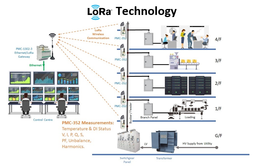 The PMC-352 is CET’s latest offer for the wireless IoT energy metering market using LoRa Technology. Compliant with the IEC 62053-21 Class 1 kWh standard, it’s equipped with one standard RS-485 Port with Modbus RTU protocol support as well as an optional AS923 LoRa Module for wireless communication. The PMC-352 comes standard with 3xDI and 4xRTD for Status and Temperature Monitoring. Designed in a compact DIN form factor measuring 36x65x90mm, it is perfect for condition monitoring applications in space-limited power distribution boards.