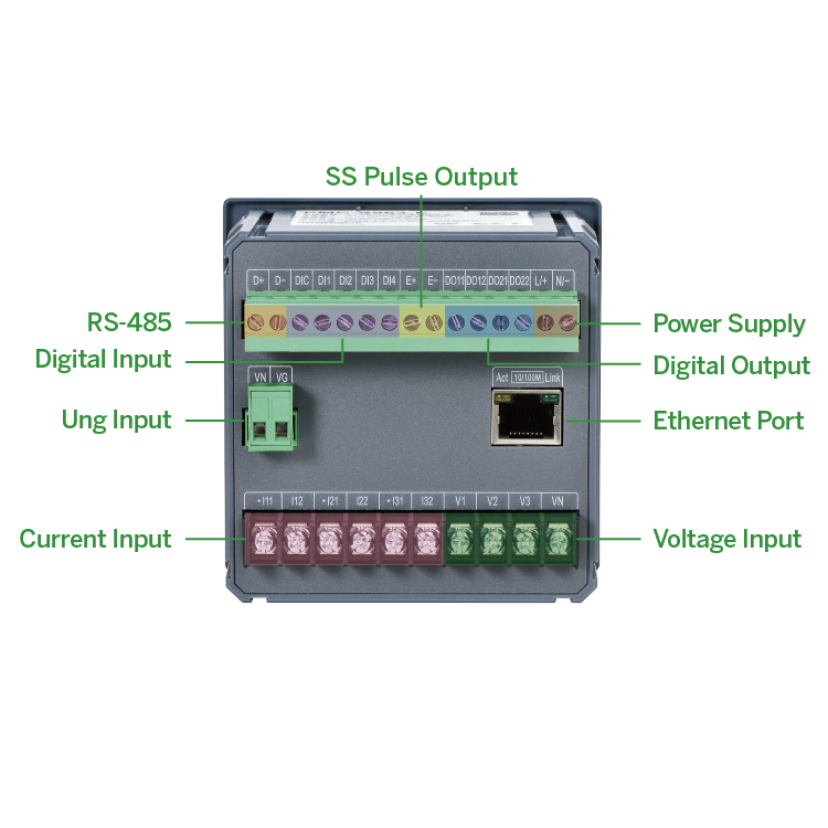PMC-S963-C and PMC-S963-E represent CET’s latest offerings in the low-cost digital power/energy metering market. Housed in a standard DIN form factor measuring 96x96x92mm, these meters are ideal for industrial, commercial, and utility applications. Both models boast high-quality construction, multifunction measurements, and a large, backlit, 7-Segment LCD that ensures easy navigation and user-friendliness. Compliant with the IEC 62053-22 Class 0.5S Standard, they serve as cost-effective replacements for analog instrumentation, capable of displaying 3-phase measurements simultaneously. PMC-S963-C and PMC-S963–E come with 4xDI, 2xDO, and 1xSS Pulse Output as default features. Additionally, PMC-S963-E provides 1xUng for neutral-to-ground measurement, while PMC-S963-C offers an optional AO for analog measurement. Both models come with a standard RS-485 port supporting multiple protocols. Additionally, PMC-S963-E offers an extra 10/100BaseT Ethernet Port for easy integration into Energy Management Systems and Building and Utility Automation Systems.